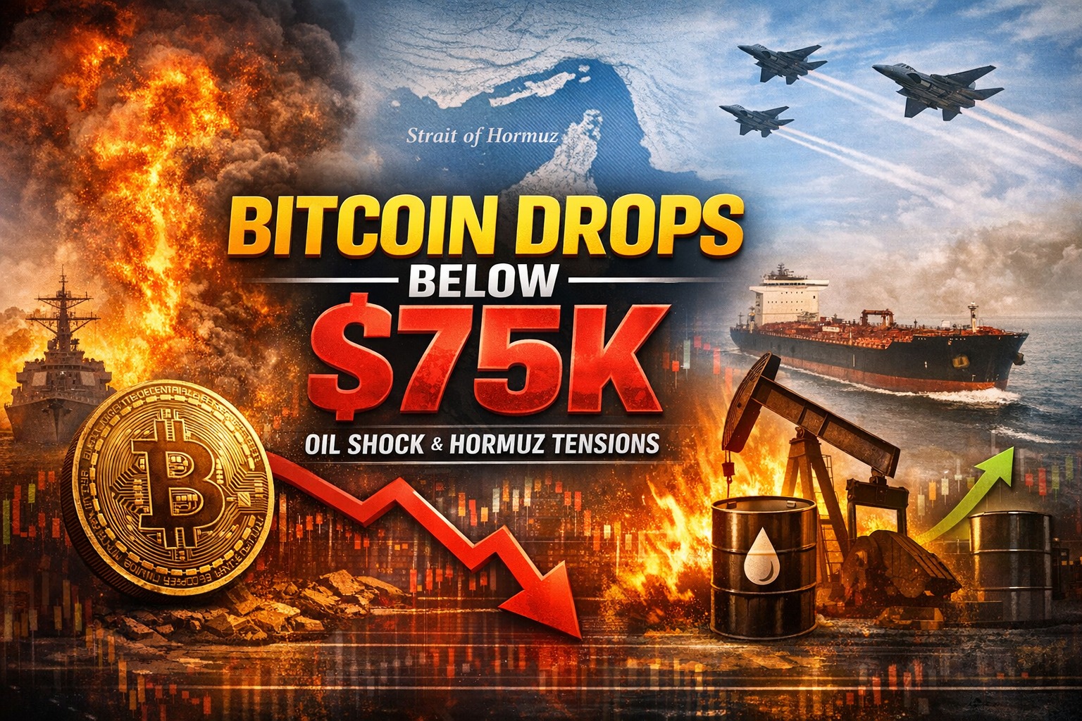 Bitcoin Drops Below $75K as Hormuz Tensions Push Oil Higher and Risk Appetite Weakens